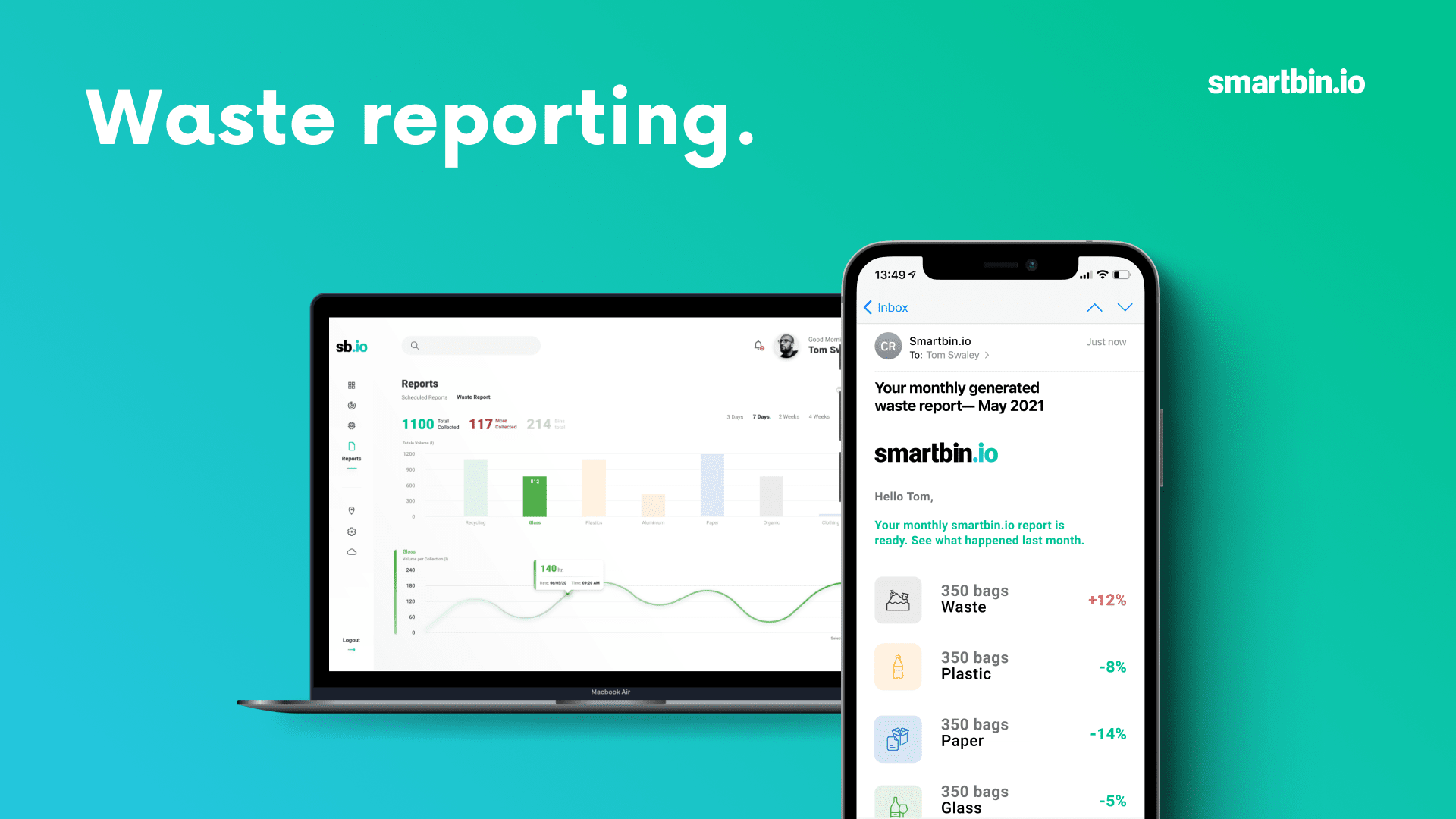 At the end every month, you’ll receive an automated report showing you how much waste and recycling was generated at your site. This estimate will help you see if your programs are working or not. Smartbin.io will track your goals of producing less landfill waste and more recyclables.